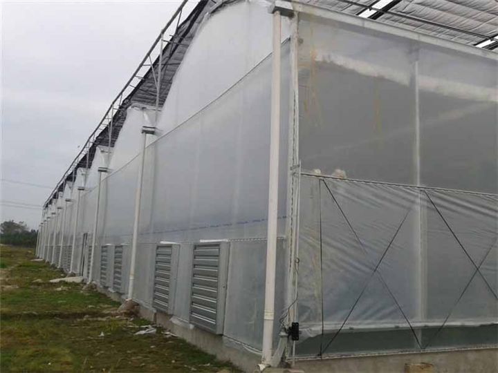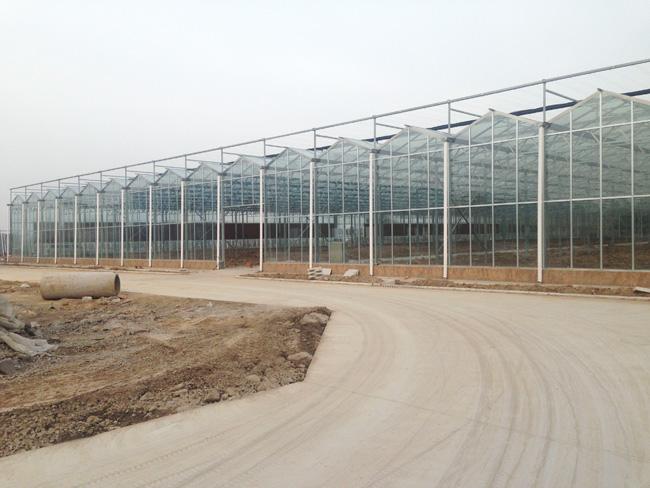 这是一种连栋型的薄膜温室大棚,包工包料,一亩的造价约6万多.